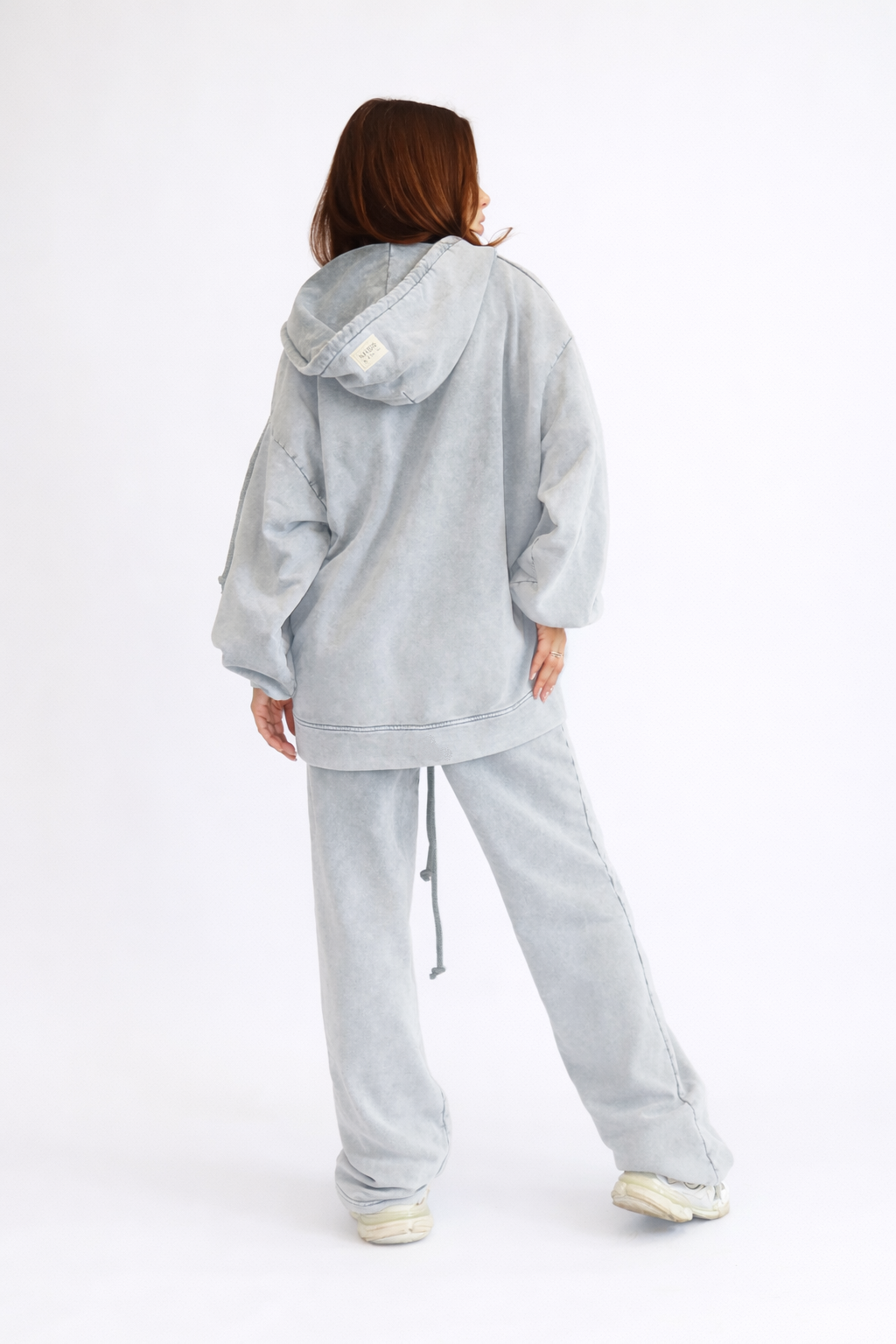 Ash Grey Washed Cut Double Belt Tracksuit Set