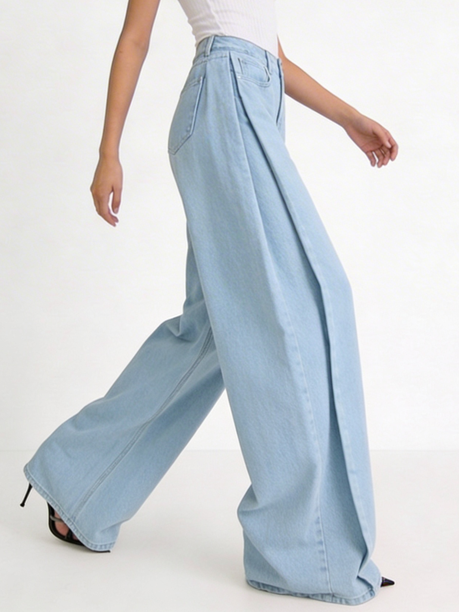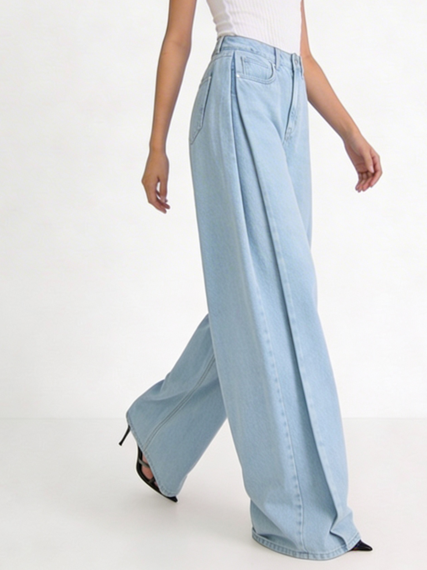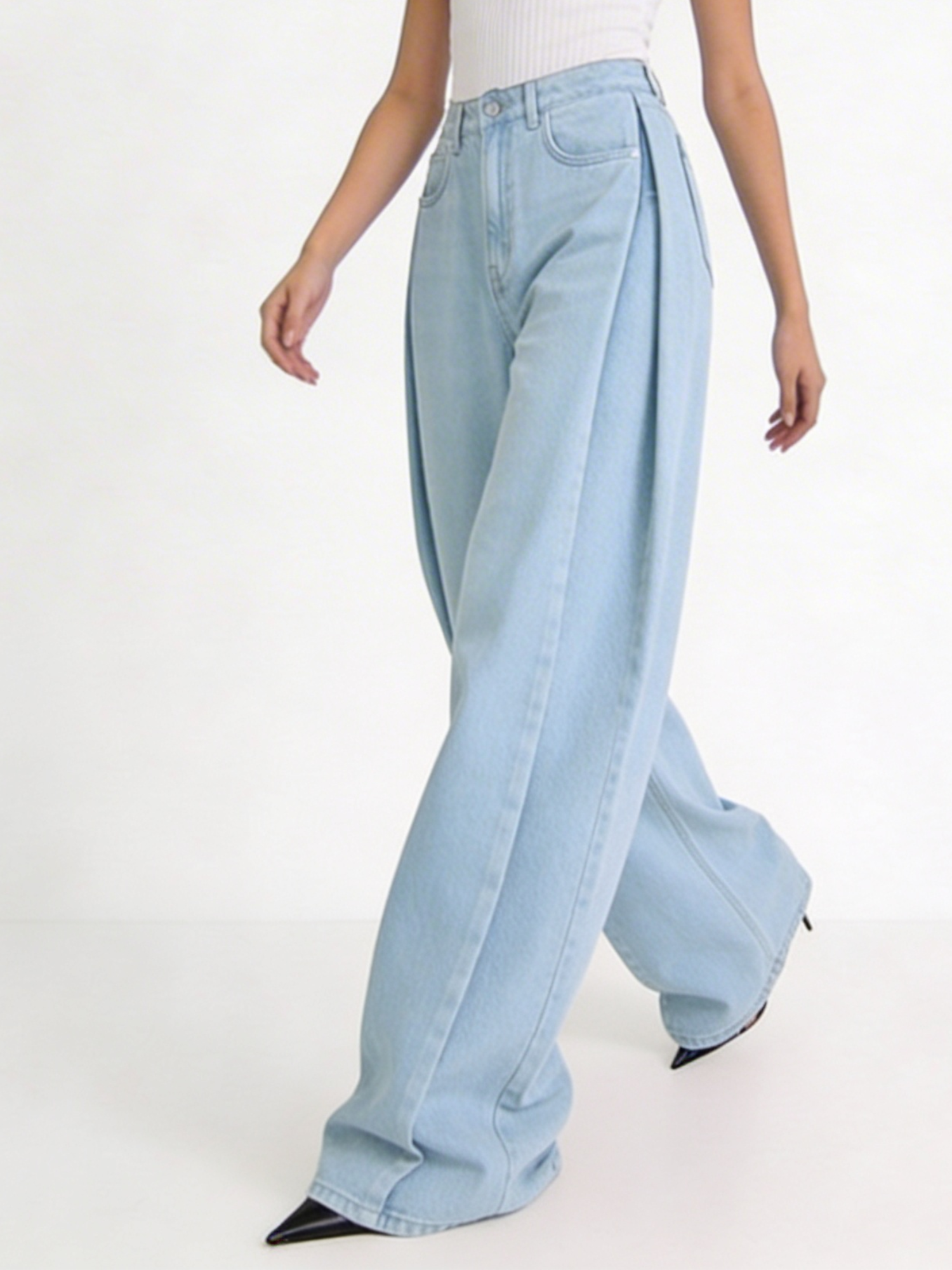 Baby Blue Pleated Baggy Jeans