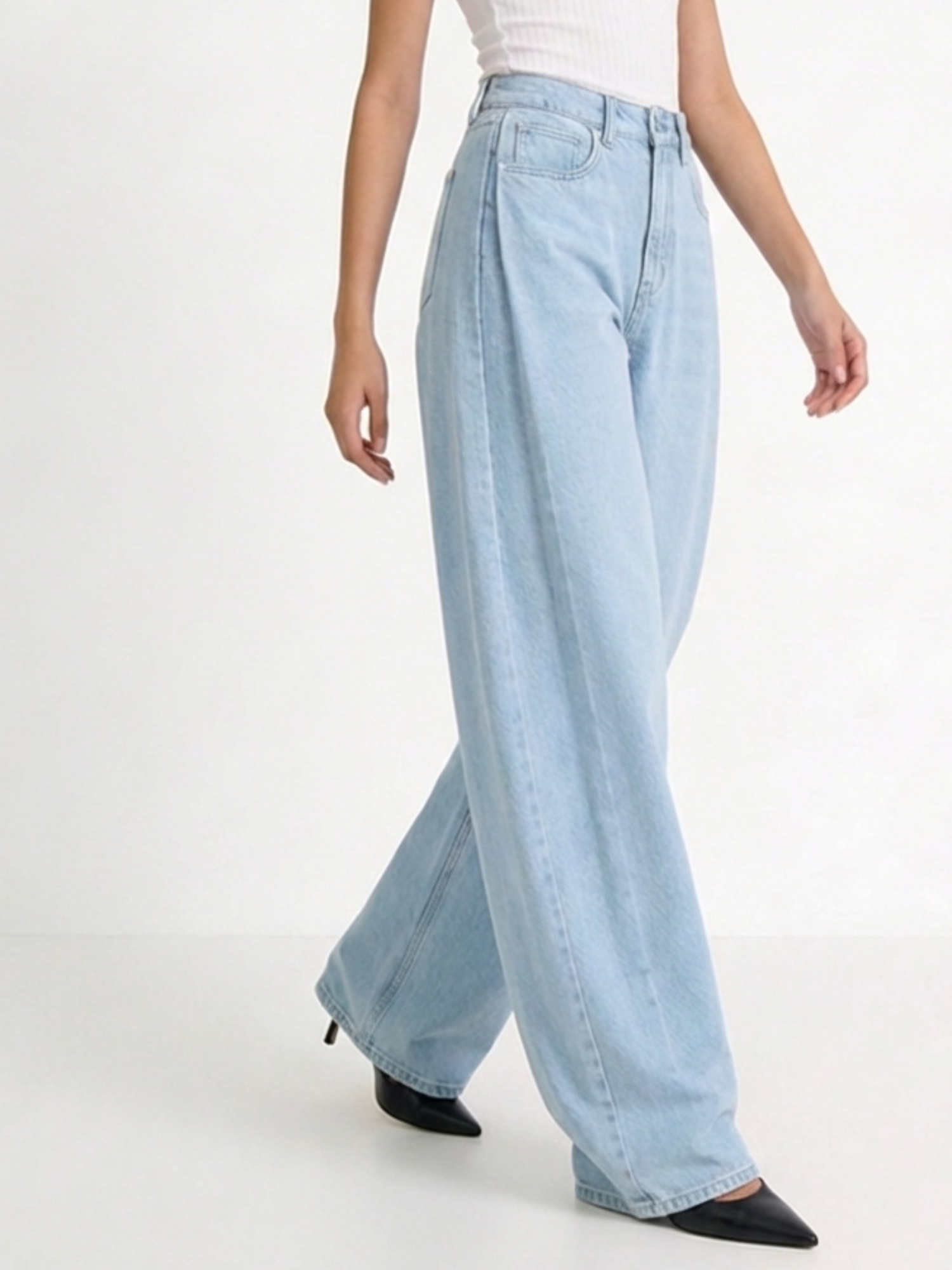 Premium denim o lekko lejącym charakterze — miękki od pierwszego założenia, nie wymaga rozchodzenia. Nogawka opada naturalnie i swobodnie, podkreślając luźny krój. Lekka gramatura sprawia, że to idealny wybór na wiosnę: nie przegrzewa i pozwala skórze oddychać. 100% bawełna bez elastanu — zachowuje kształt przez długi czas.
