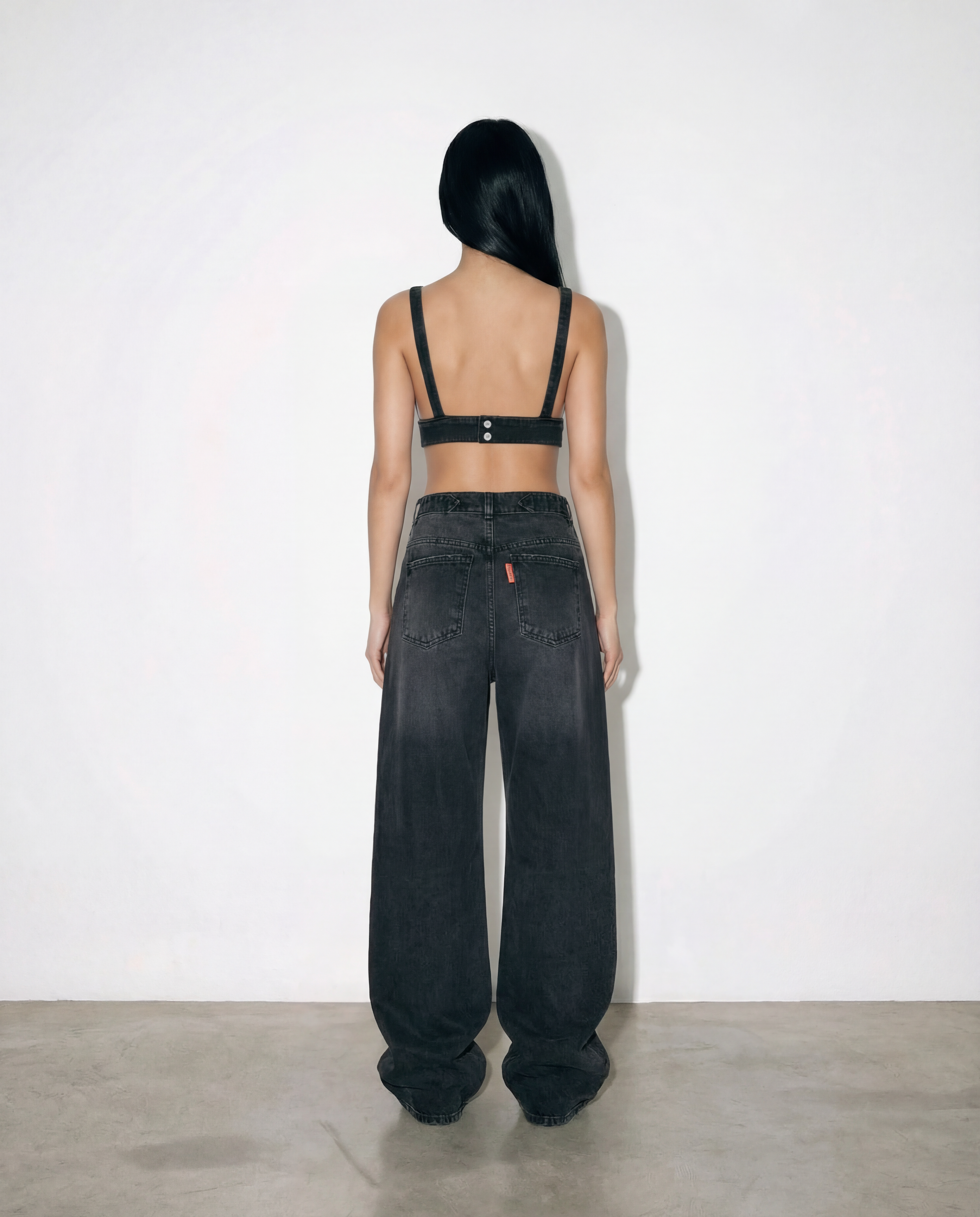 Denimowy top ale biustonosz z tkaniny 100% bawełna. Zapinany na napy z tyłu (możliwość regulacji 3 obwodów). Dwa rozmiary uniwersalne.