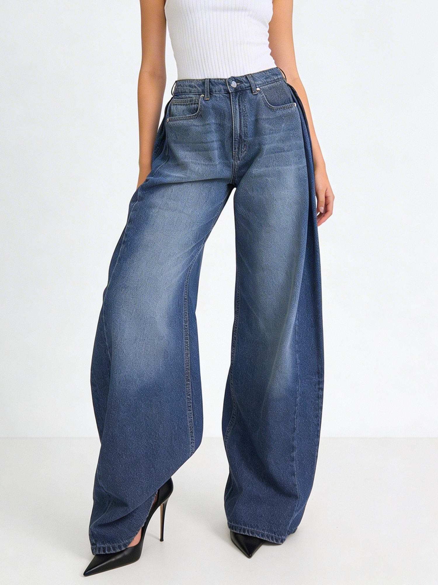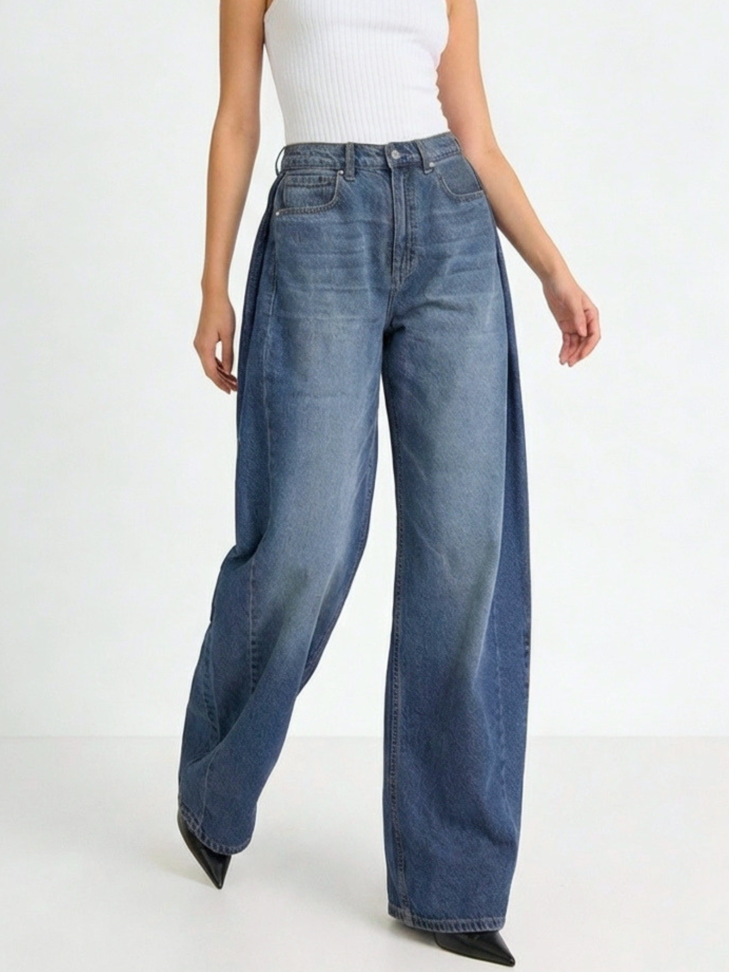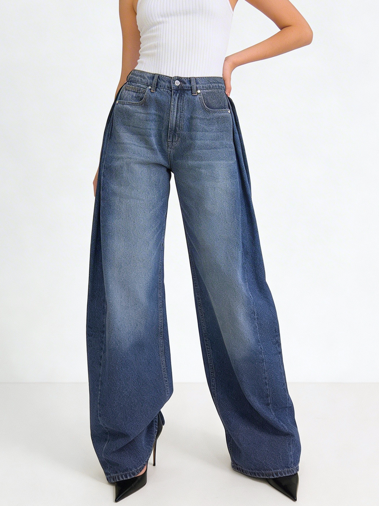 - Luźny, szeroki krój baggy w odcieniu blue — nowoczesny i minimalistyczny