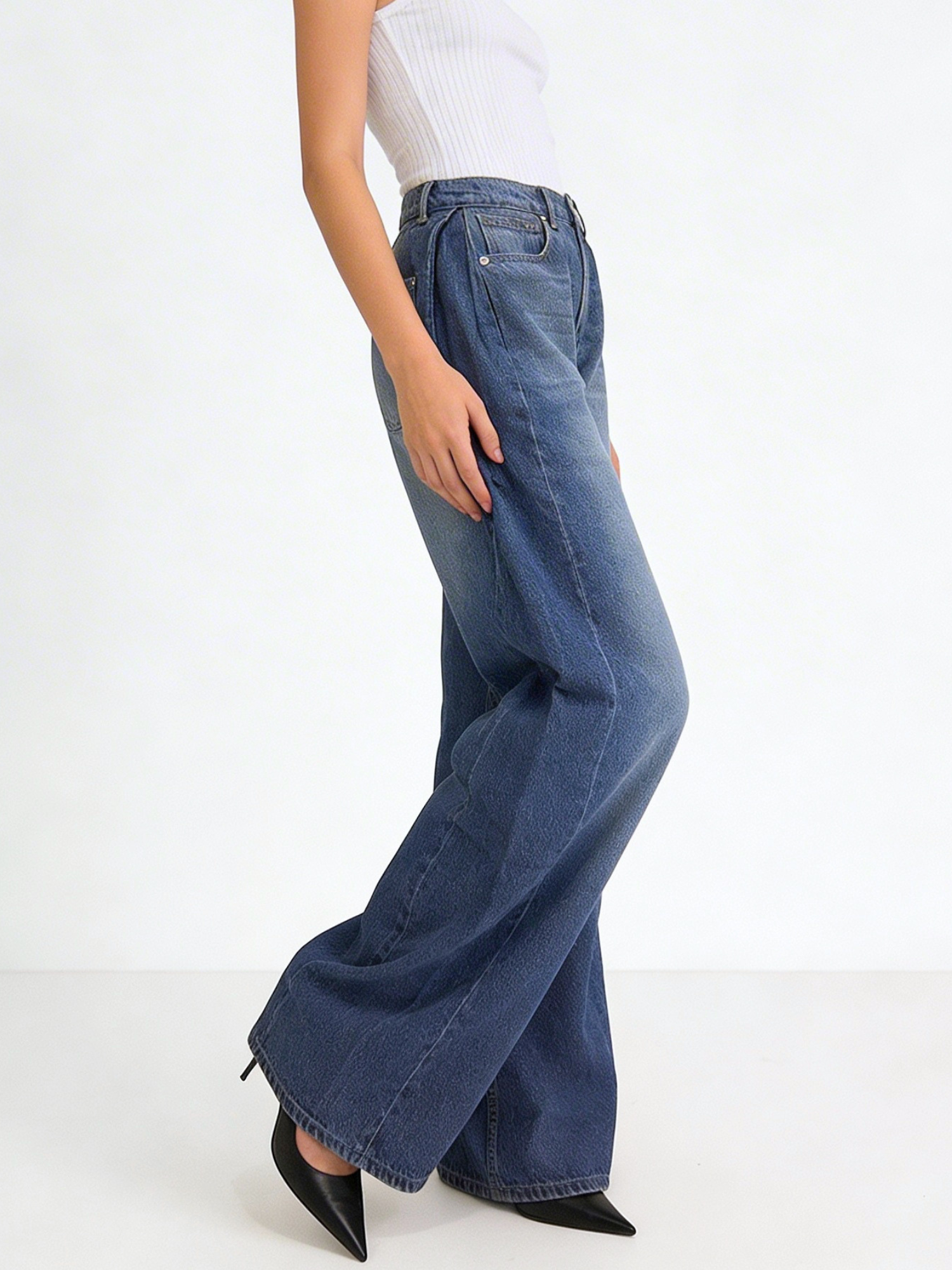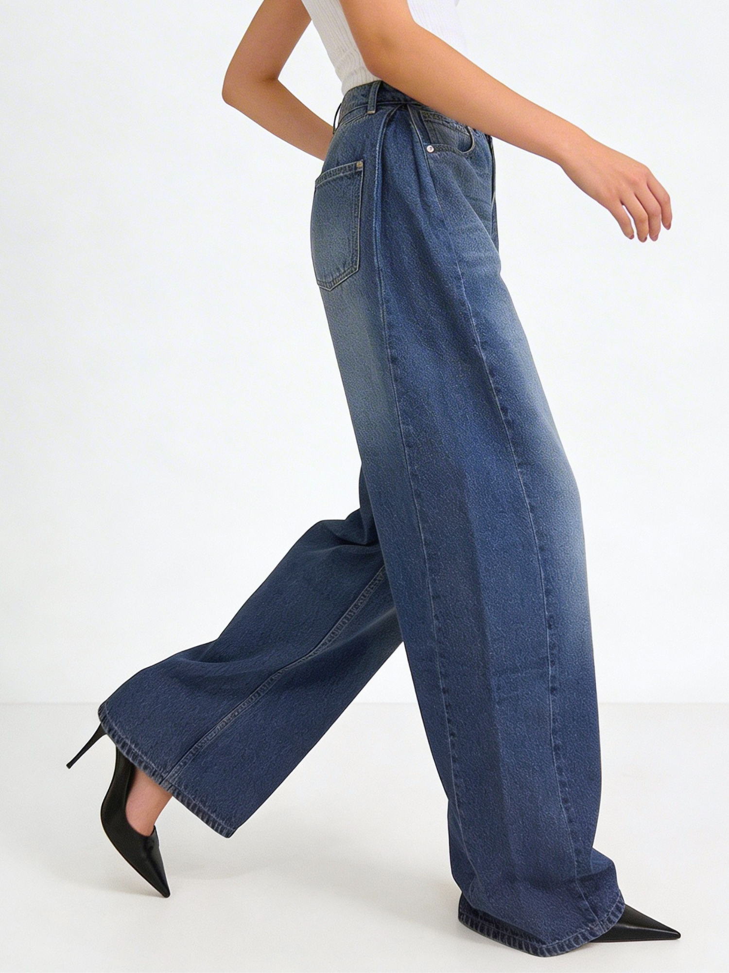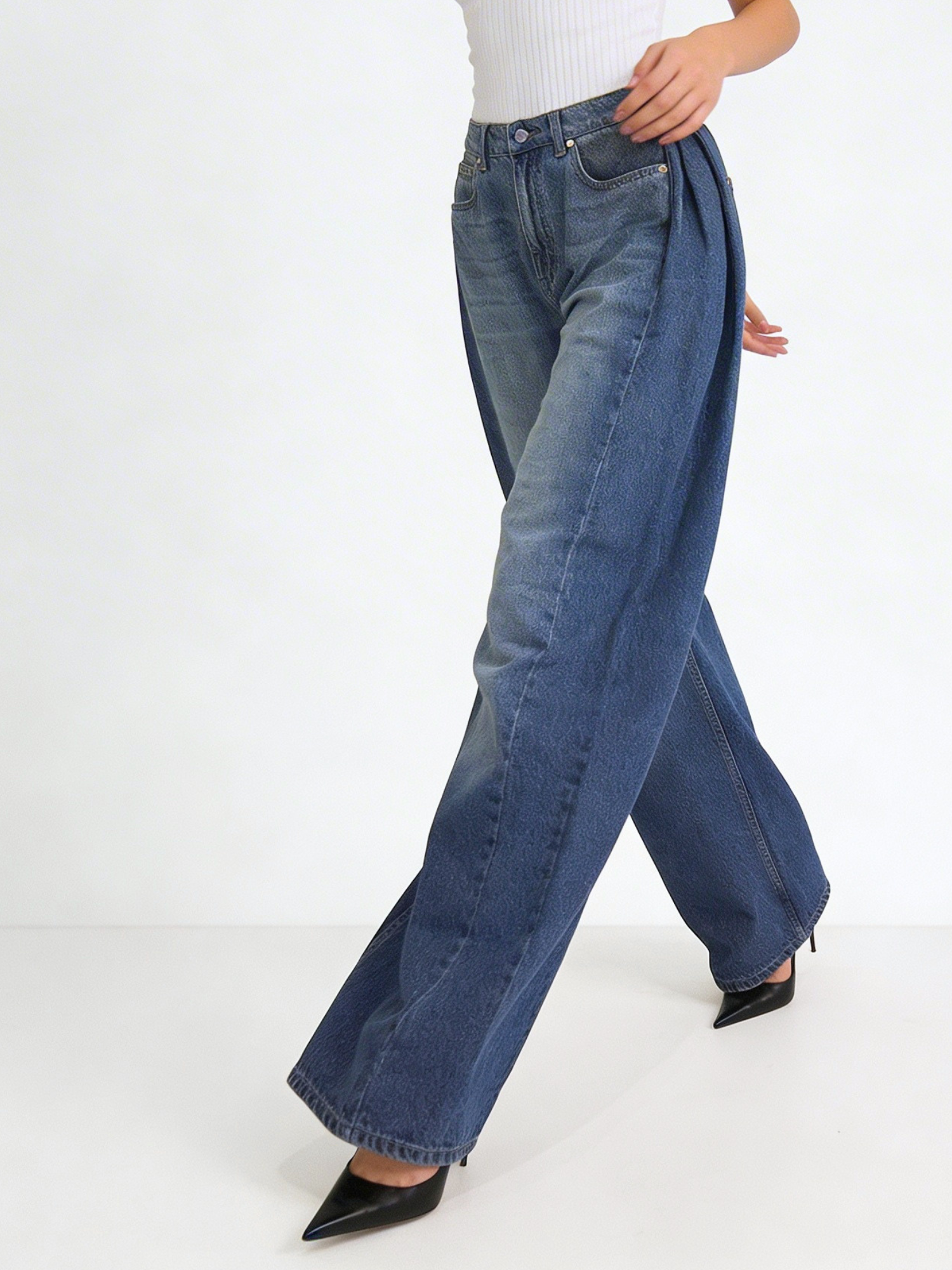 Premium denim o lekko lejącym charakterze — miękki od pierwszego założenia, nie wymaga rozchodzenia. Nogawka opada naturalnie i swobodnie, podkreślając luźny krój. Lekka gramatura sprawia, że to idealny wybór na wiosnę: nie przegrzewa i pozwala skórze oddychać. 100% bawełna bez elastanu — zachowuje kształt przez długi czas.